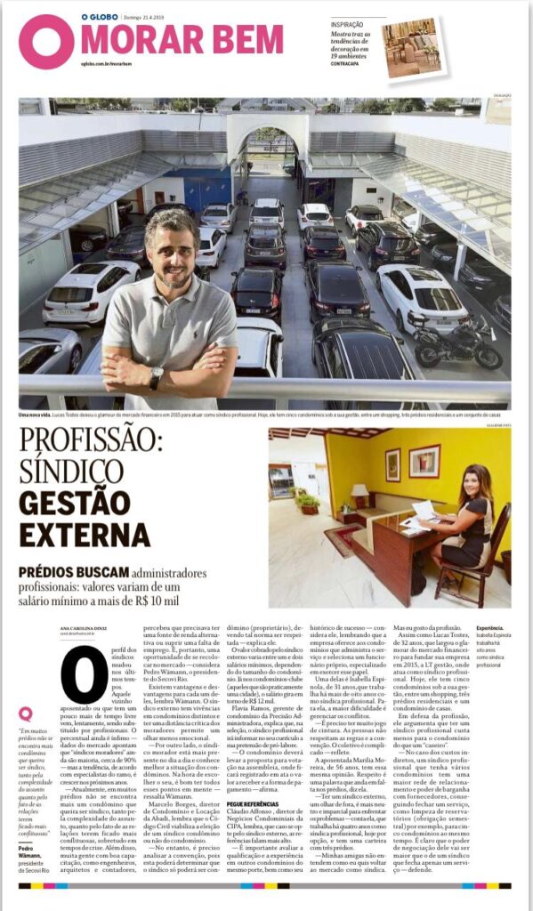 Crescimento da profissão de síndico profissional [LT Gestão no Jornal O Globo]